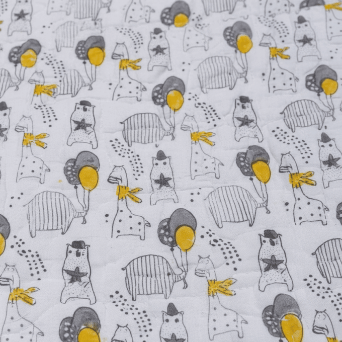 Bring home joyful cuddles with our Circus Animals Handblock Baby Comforter, designed to keep your little one cozy and happy all year round. Featuring playful hand-illustrated animals with cheerful balloon details, this comforter adds a fun, storybook charm to your baby’s everyday snuggles. Thoughtfully handcrafted with Muflu’s mom-to-mom care, it’s gentle, breathable, and perfect for newborn skin.