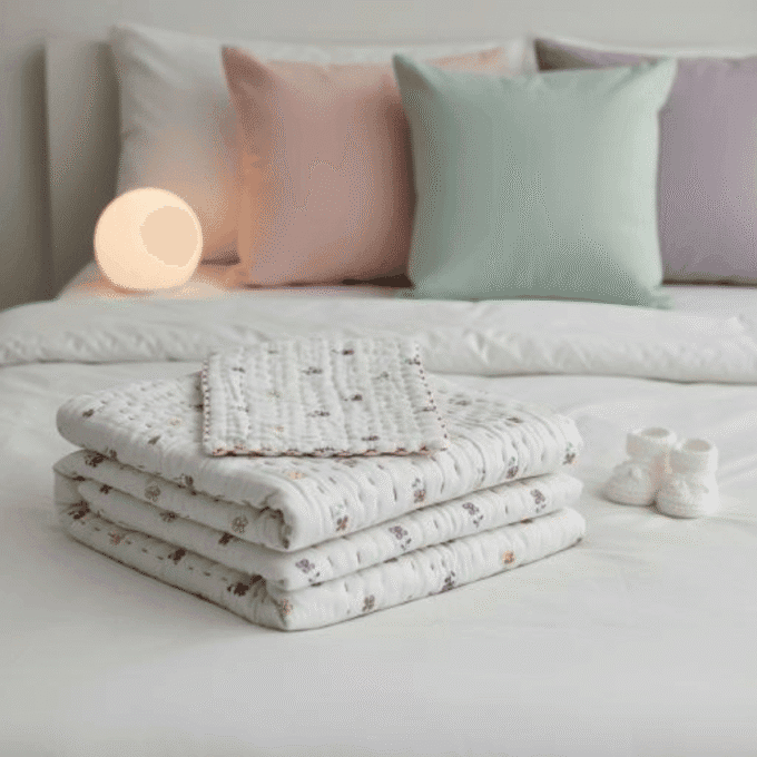 Made from 100% premium cotton, it stays breathable in summer, warm in winter, and light during monsoon – perfect for all 12 months. Gentle on delicate skin, hypoallergenic, and easy to wash, this comforter is ideal for naps, stroller rides, tummy time, or gifting.