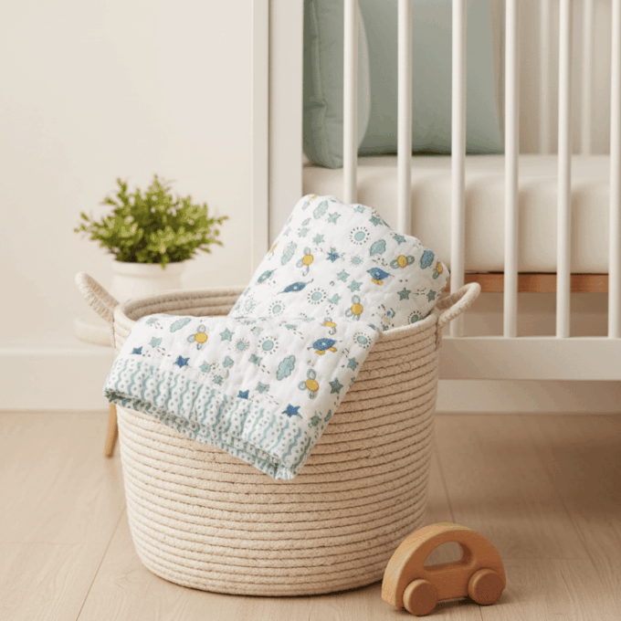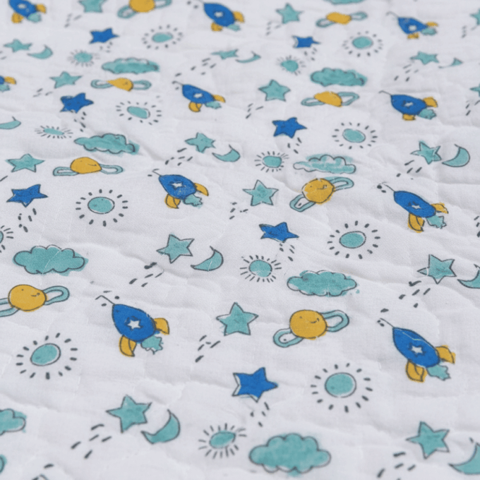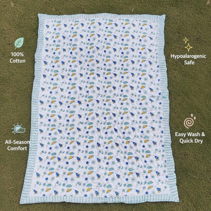 Space Rockets Handblock Baby Comforter 100% Cotton (0–5 Years)